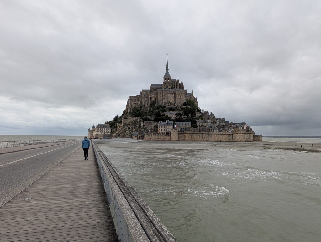After a week or so of cycling you’ll pass Mont-Saint-Michel, a castle/church on top of a rock a few km off the coast. Previously it was accessible only at low tide, but these days there’s a bridge. At peak season it is probably unbearably full of tourists. In late September it was just fine. We had a walk around and a decent dinner.