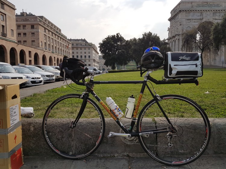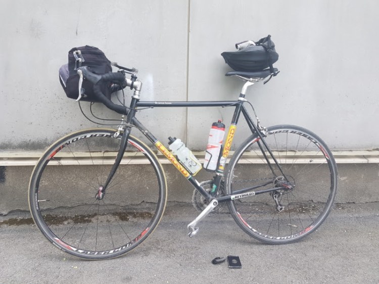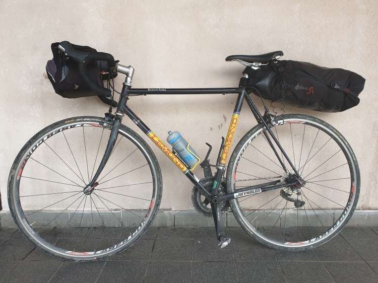 The main problem with road bikes is that they normally don’t have any prepared place to attach bags. Some people solve this by carrying everything in a small backpack. This could work, but your shoulders may suffer after a week on the road. I have shoulders like an anchovy, so I put my stuff in bags attached to my bike. Fortunately you can always attach a front bag to your handlebars.