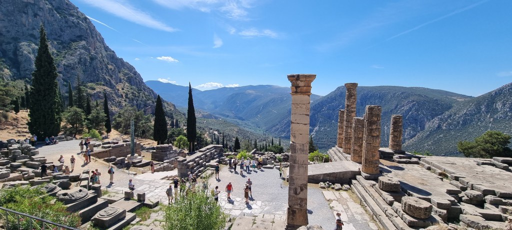 Next stop was Delphi, but to get there I first had to cross two mountain ranges and finish the day with a long climb in very intense sunshine. I was spent and very tired when I finally arrived. After my shower I fell asleep for an hour on my bed. The next day I explored the impressive ruins and the museum.