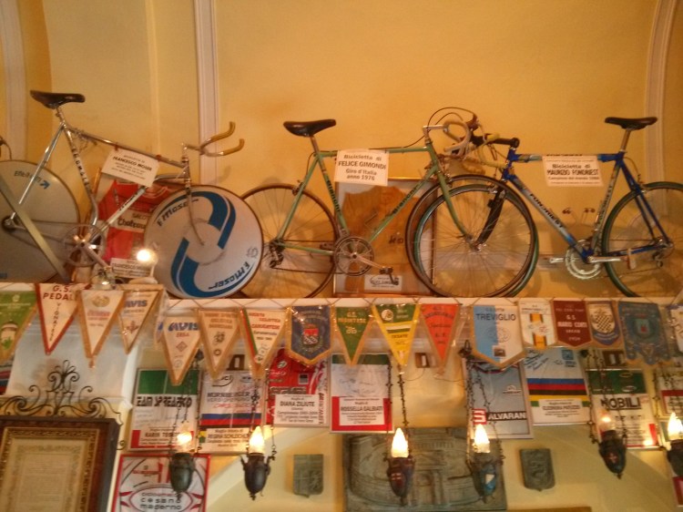 Close to the chapel is a bicyclist museum. Lots and lots of bikes, but also this photo of famous Italian biker Fiorenzo Magni, who since then has been my absolute favorite bicyclist. What are the chances of beating this guy in a finishing sprint? This photo still cracks me up every time I see it!