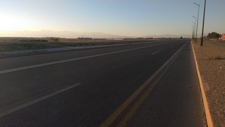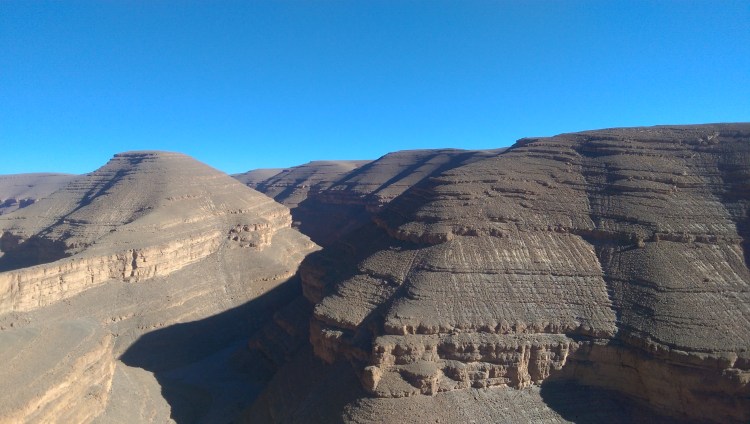I reached the Tizi n’ Test pass at 2093 meters well after dark in bitter cold, and took in at the tiny “hotel” as the only guest. I got a room with absolutely no heating, triple blankets and a shower with lukewarm water. For dinner I shared a stew with the brothers running the place. In the morning I got to peek behind the Atlas mountains, into the vastness of the Maghreb hills and plains that slowly merges with the Sahara desert.